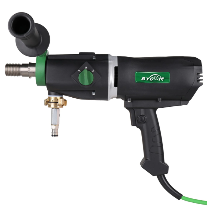 - электрическая безопасность — алмазные дрели BYCON соответствуют европейским и международным стандартам. Основной особенностью является наличие блока защиты включения (PRCD) на кабеле;