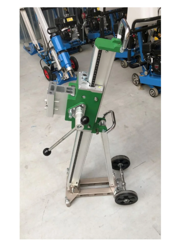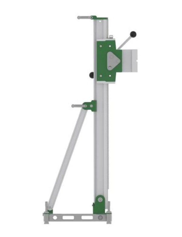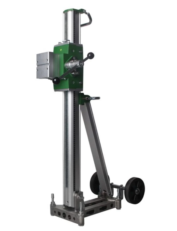 Надежная станина установки алмазного бурения BYCON DSP-500 c прочным стальным основанием для анкерного крепления, транспортировочными колесами, быстросъемным креплением двигателя для сверления отверстий диаметром до 500 мм.