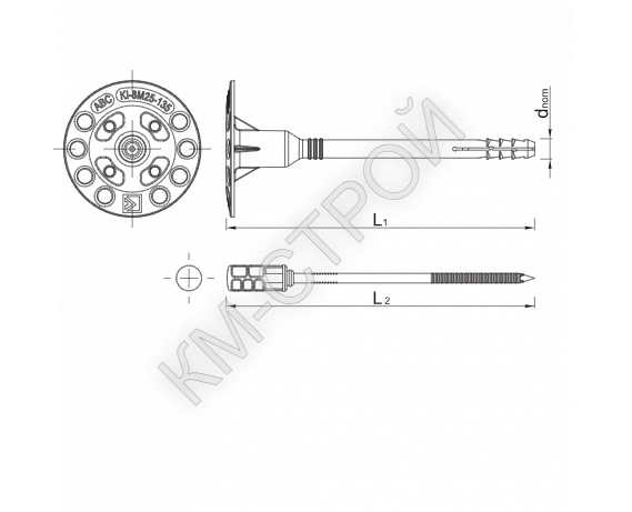 Главная Каталог Анкеры Тарельчатые дюбели для теплоизоляции (гриб) Дюбель KI-220N с длинной распорной зоной со стальным гвоздем (D=4.9) с термоголовой