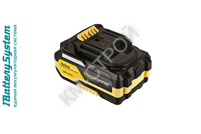 HBP2004 аккумулятор Hanskonner 18 В, 1BatterySystem, 4.0 Ач, USB-разъем