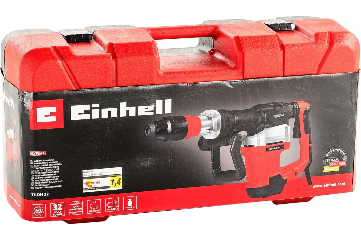 - Einhell TE-DH 32 4139099 поставляется в практичном кейсе для транспортировки и хранения E-Box