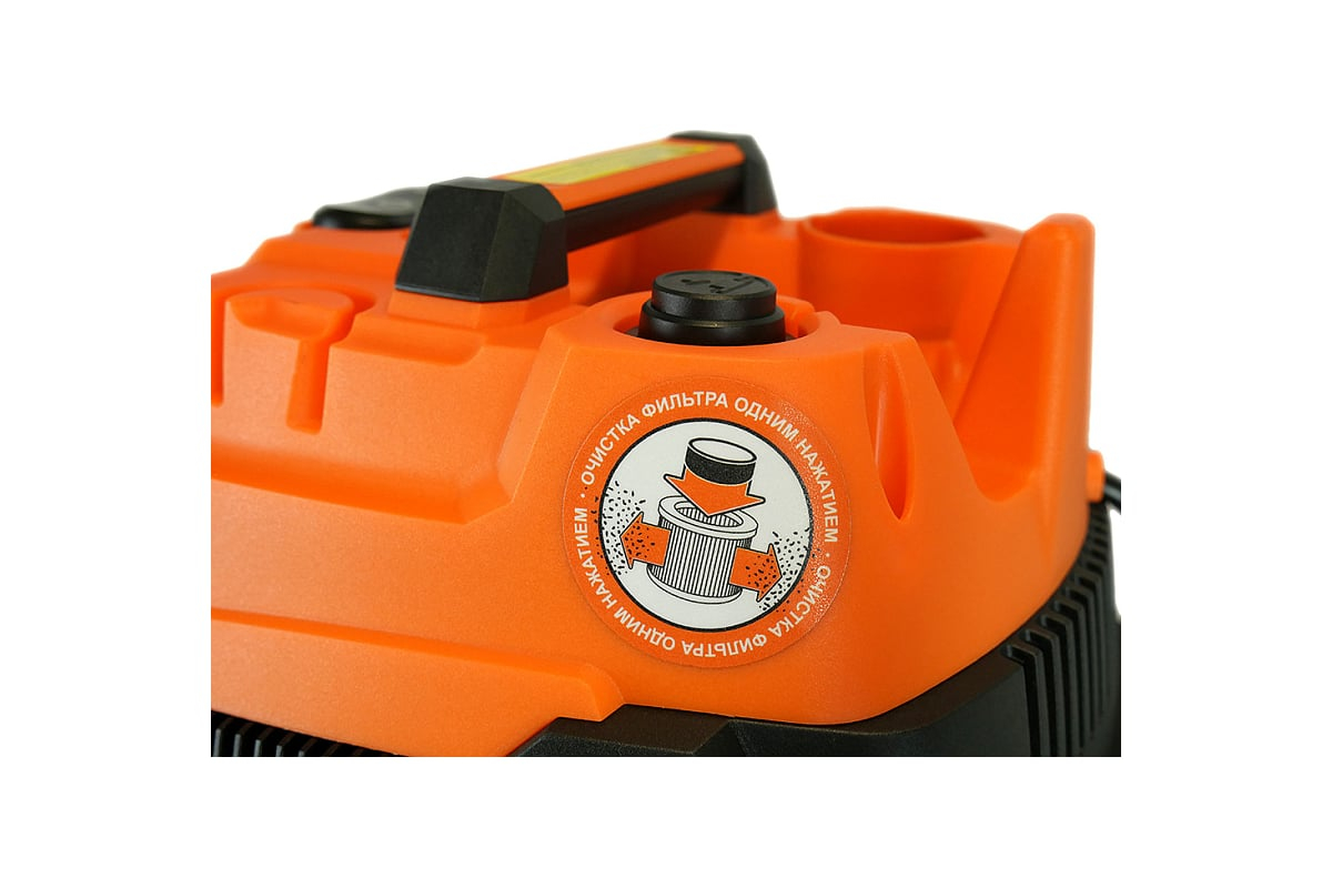 Данная модель отличается встроенной розеткой с функцией синхронизации, что позволяет подключать электроинструменты мощностью до 2000 Вт и согласовывать с ними работу пылесоса.