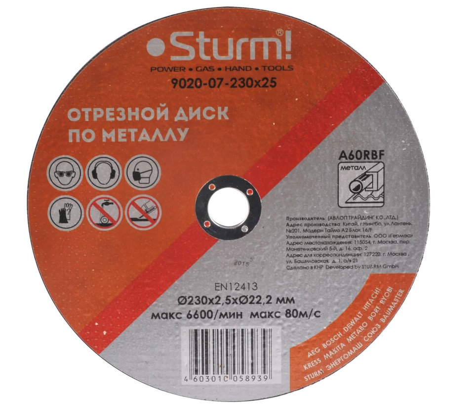 Диск отрезной по металлу, Sturm!