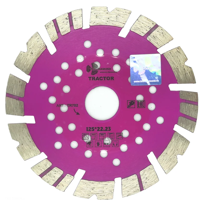 Особенности: рифлёные сегменты с увеличенной высотой режущей кромки обеспечивают высокую скорость реза, перфорация корпуса способствует дополнительному охлаждению диска.