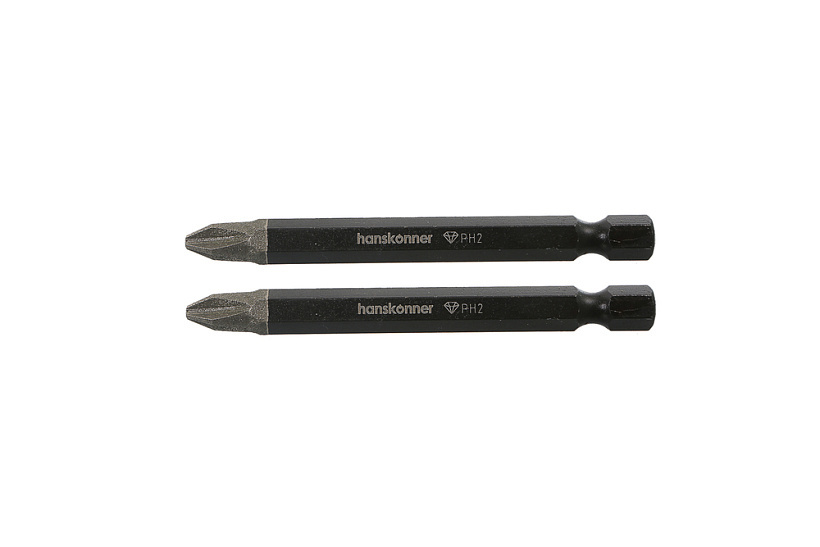 Биты PH2x75мм, сталь S2, Diamond, 2шт,Hanskonner