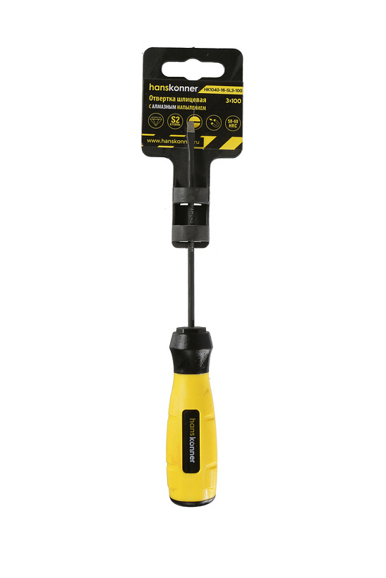 Шлицевая отвертка Hanskonner 3x100 алмазный наконечник, твердость 59 HRC